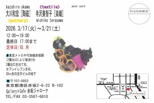 奥村巴菜 陶展 – 擬態 – 2025.12.2(火)~12.6(土) 2025年11月22日 作家は最終日在廊予定です。 その他の日に在廊する場合はXにてお知らせいたします。 作家Xアカウント @Okumushi_hana