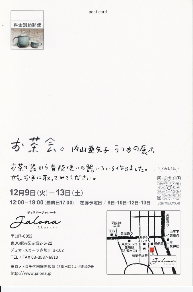 お茶会。 内山亜矢子 うつわの展示 2025.12.9(火)~12.13(土)
