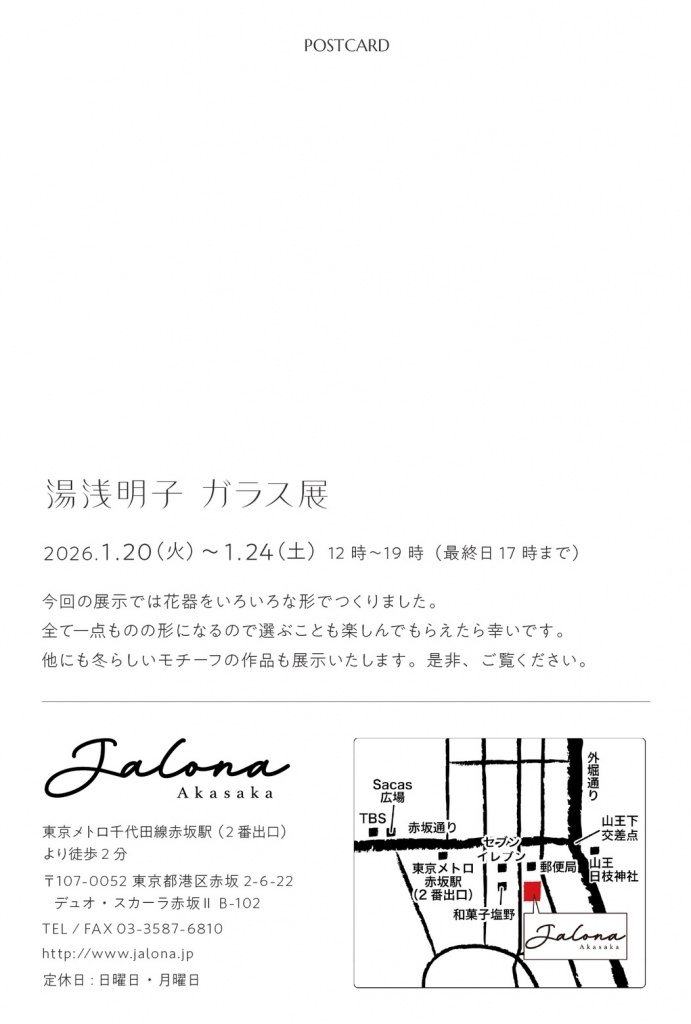 湯浅明子 ガラス展 2026.1.20(火)~1.24(土)