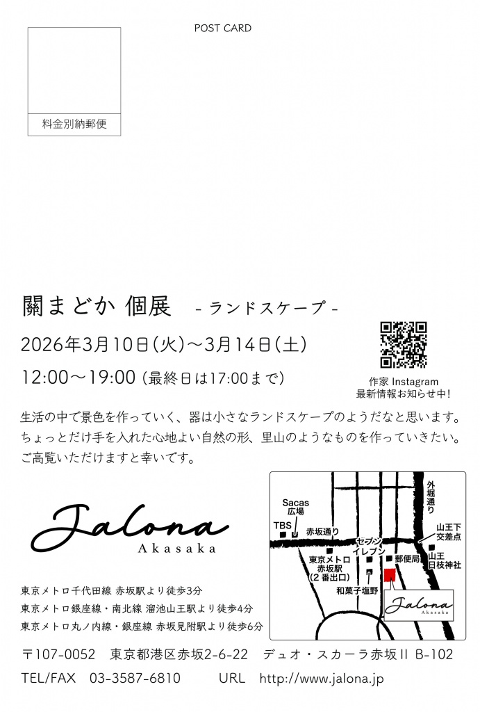 關まどか 個展 -ランドスケープ- 2026.3.10(火)~3.14(土)